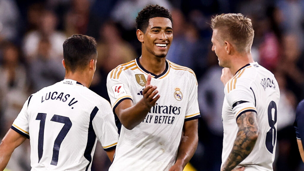 Pela Liga dos Campeõs, o Real visita o Braga, em Portugual, com transmissão do SBT, TNT e HBO Max. (Foto: Divulgação/Real Madrid).
