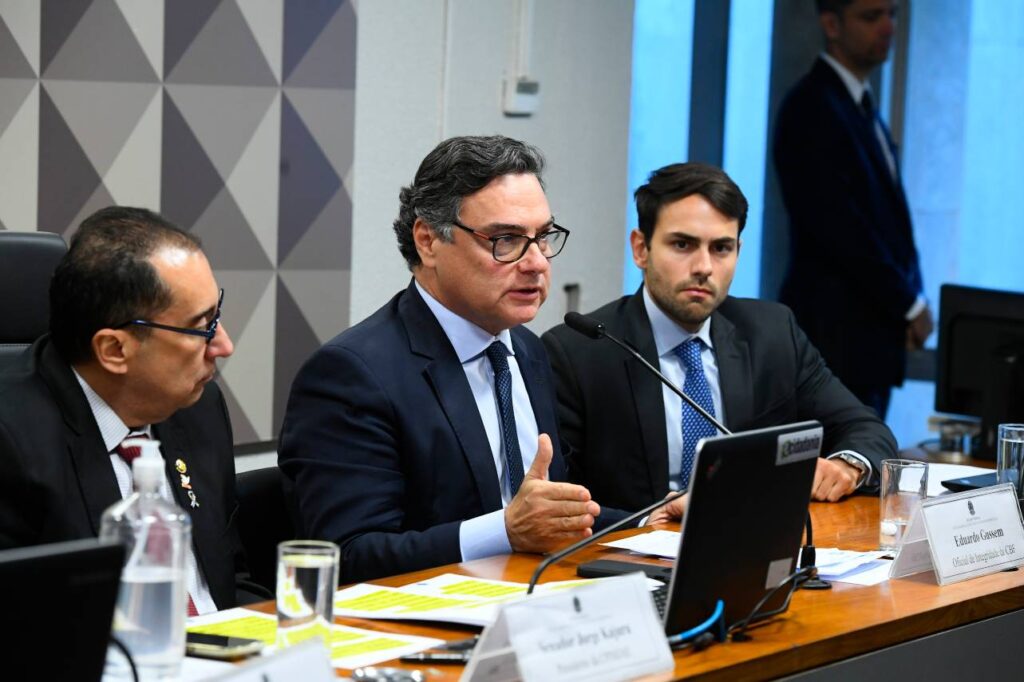 Eduardo |Gussem reforçou pedido para que John Textor apresente as provas. Foto: Marcos Oliveira /Agência Senado A finalidade da comissão é apurar, no prazo de 180 (cento e oitenta) dias, fatos relacionados às denúncias e suspeitas de manipulação de resultados no futebol brasileiro, envolvendo jogadores, dirigentes e empresas de apostas. Mesa: presidente da CPIMJAE, senador Jorge Kajuru (PSB-GO); oficial de Integridade da Confederação Brasileira de Futebol (CBF), Eduardo Gussem; advogado Marcelo Neves Resende. Foto: Marcos Oliveira /Agência Senado