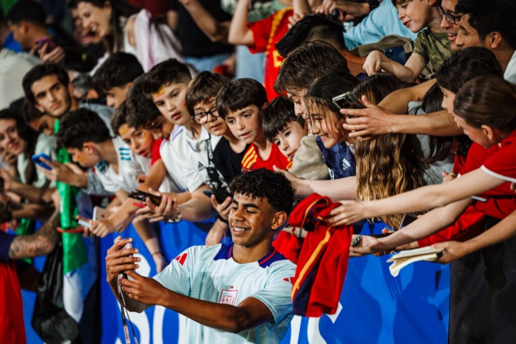 Lamine Yamal com jovens torcedores. Foto: Reprodução/SEF