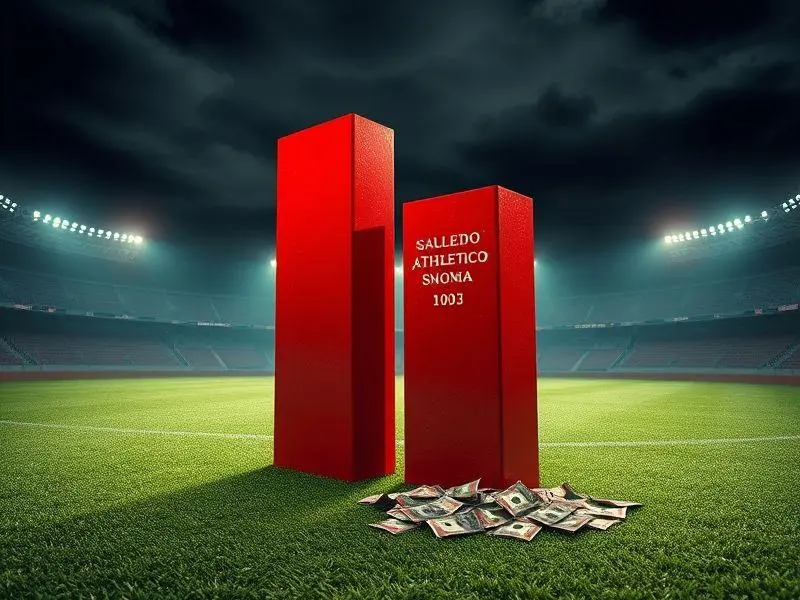 Gráfico hipotético ilustra a queda de valor do Athletico Paranaense na Série B, em tons melancólicos.