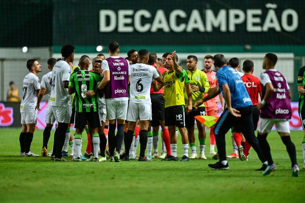 Confusão em América-MG e Santos (Foto: Mourão Panda/América)