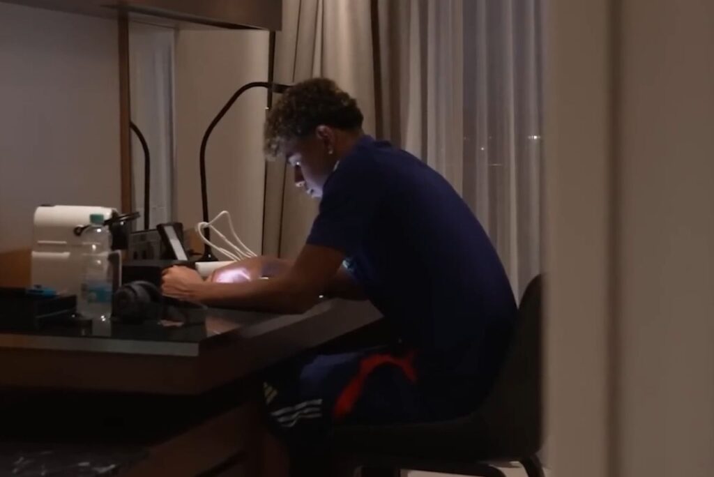 Astro do Barcelona, o jovem, que foi titular na vitória por 3 a 0 contra a Croácia, faz aulas online entre os jogos e treinos da seleção.