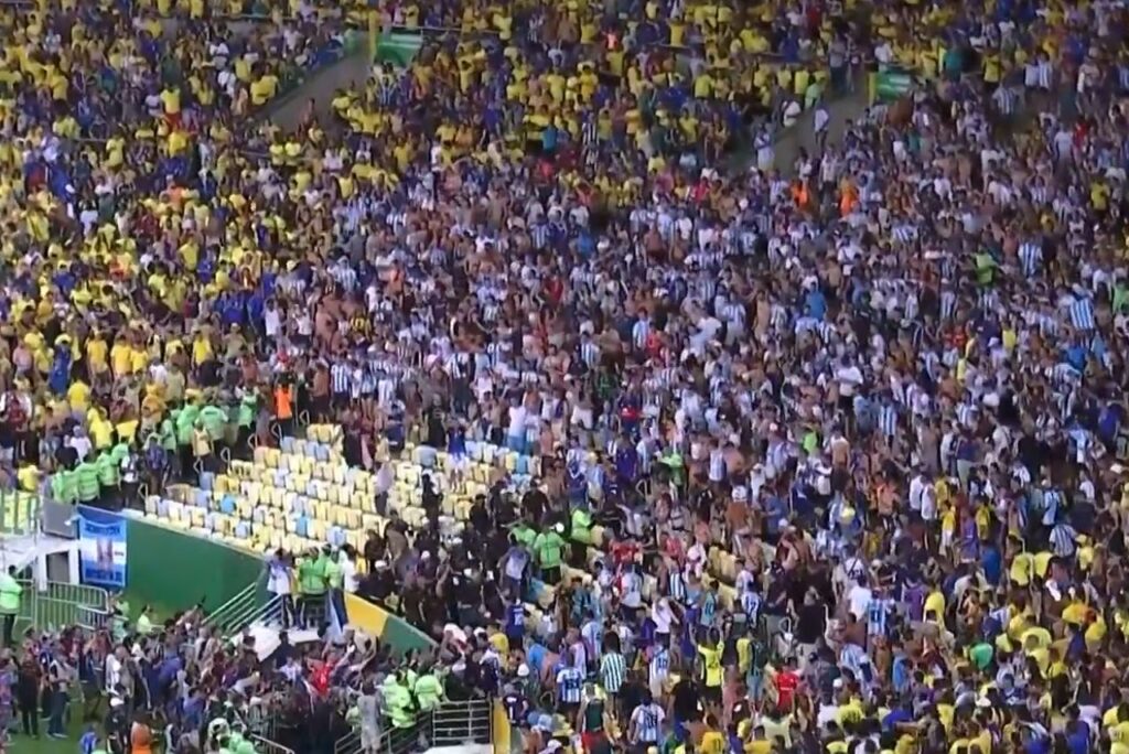 Em duelo marcado por confusões nas arquibancadas, Brasil perde para a Argentina no Maracanã. . Foto: Reprodução/TV Globo