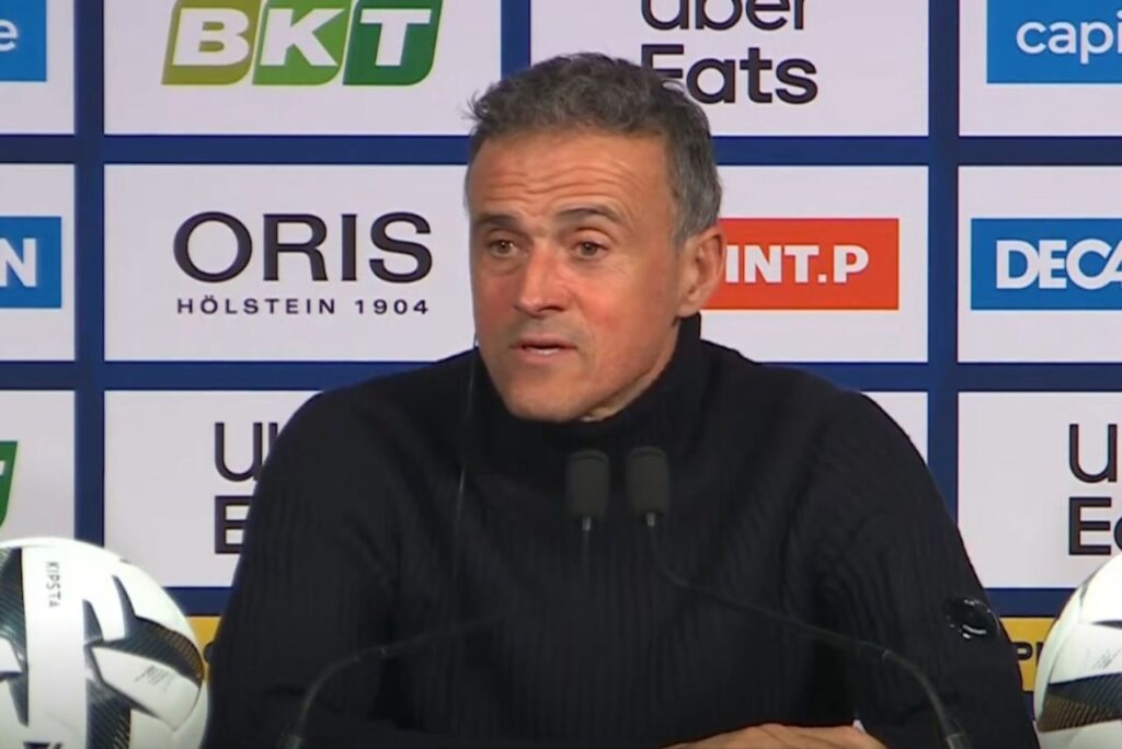 Luis Enrique em entrevista coletiva após a vitória do PSG na Supercopa da França 2023 (Foto: OneFootball/Reprodução)