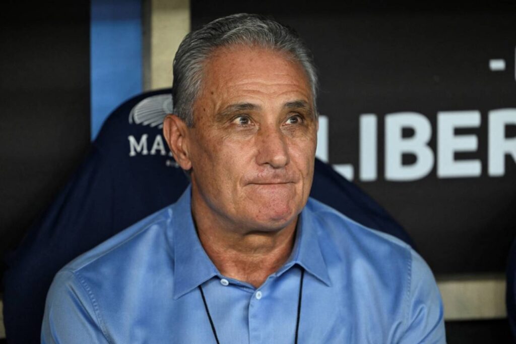 Tite levou cuspida durante o jogo contra o Palmeiras no Allianz Parque. Foto: MAURO PIMENTELAFP