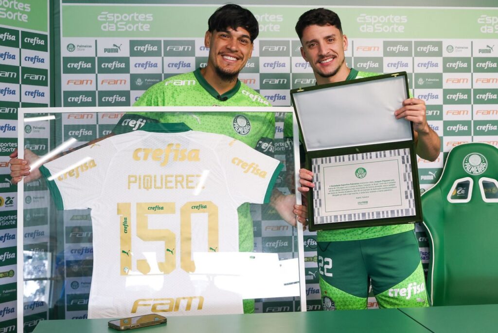 Piquerez recebeu do zagueiro Gustavo Gómez uma placa comemorativa e uma camisa em uma quadro, além de um kit de churrasco personalizado com tábuas e facas. Contratado em 2021, o atleta soma até o momento 11 gols e 13 assistências.