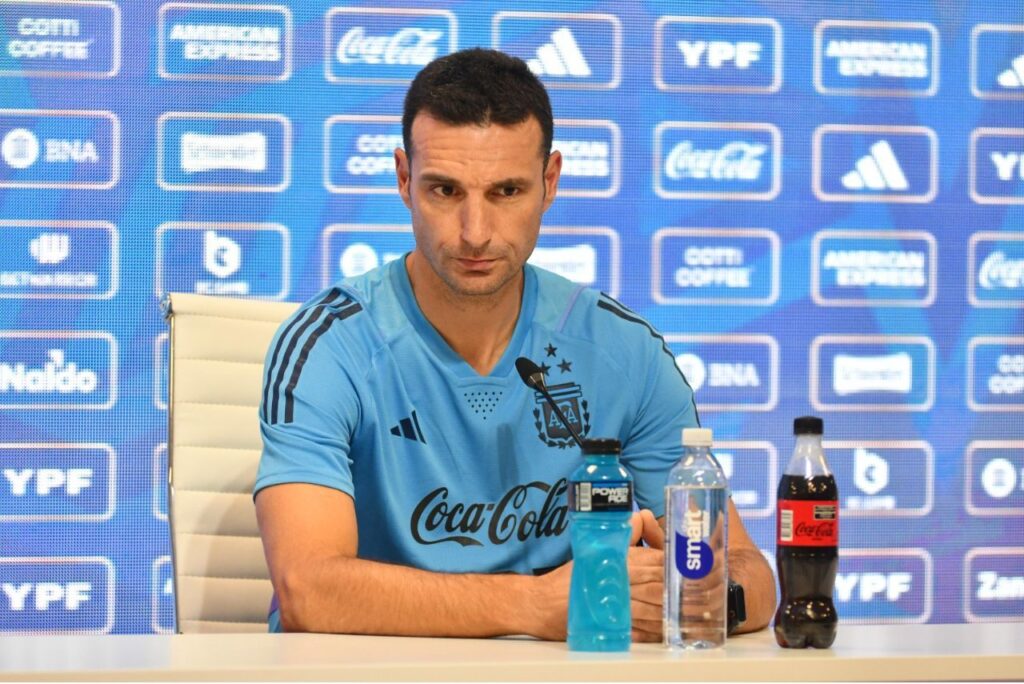 Lionel Scaloni, técnico da Seleção Argentina, em entrevista coletiva (Foto: X/Reprodução)