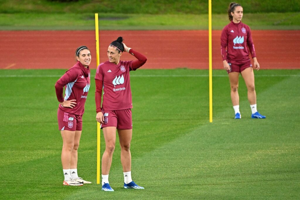 Jenni Hermoso (ao centro) voltou aos treinos com a Seleção Espanhola (Foto: Javier Soriano/AFP)