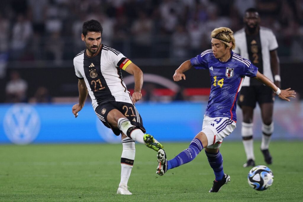 Dois gols do Japão vieram pelo lado direito do ataque, onde o lateral alemão Nico Schlotterbeck foi claramente dominado por Yukinari Sagawara e Junya Ito.