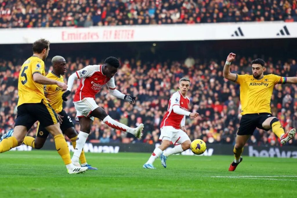 Gols: Arsenal: Saka (6’/1ºT) e Ödergaard (13’/1ºT). Wolverhampton: Matheus Cunha (41’/2ºT).