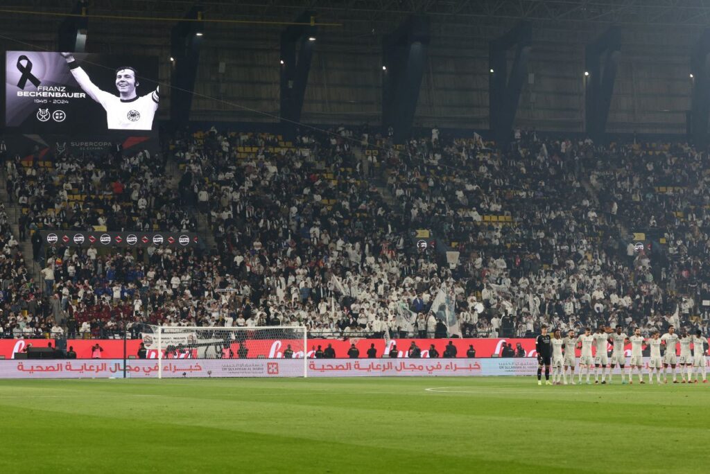 Homenagem a Franz Beckenbauer na disputa da Supercopa da Espanha 2023-24 (Foto: Giuseppe Cacace/AFP)