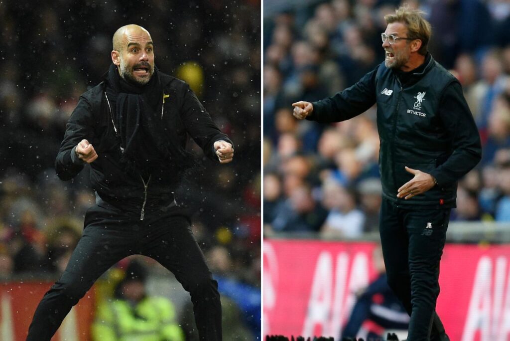 Guardiola e Klopp se preparam para mais um duelo. Foto: Ian Kington e Oli Scarff / AFP