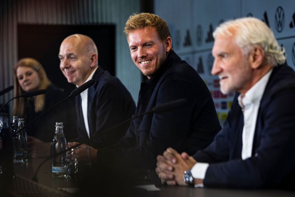 Menos de uma hora depois do anúncio de sua chegada à ‘Mannschaft’, Nagelsmann concedeu entrevista coletiva na sede da Federação Alemã de Futebol (DFB), em Frankfurt, ao lado do presidente Bernd Neuendorf e do diretor esportivo Rudi Völler.