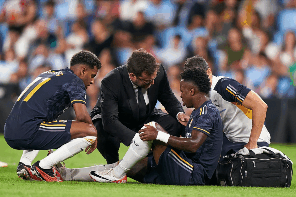 O atacante Vini Jr. sofreu uma lesão muscular nesta sexta-feira (25), em partida do Real Madrid contra o Celta de Vigo válida pela 3ª rodada da La Liga.
