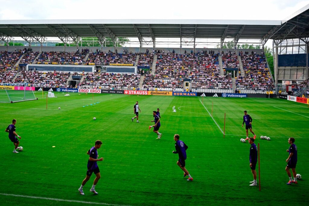 A seleção da Alemanha iniciou a preparação para disputar a Eurocopa (14 de junho – 14 de julho) como anfitriã com um treino aberto para o público que contou com a presença de 15 mil pessoas, nesta segunda-feira (27), na cidade de Jena, no leste do país.