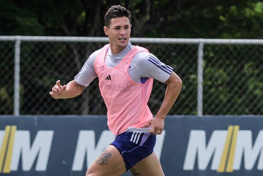 Meia Matheus Vital em treino do Cruzeiro em 2024