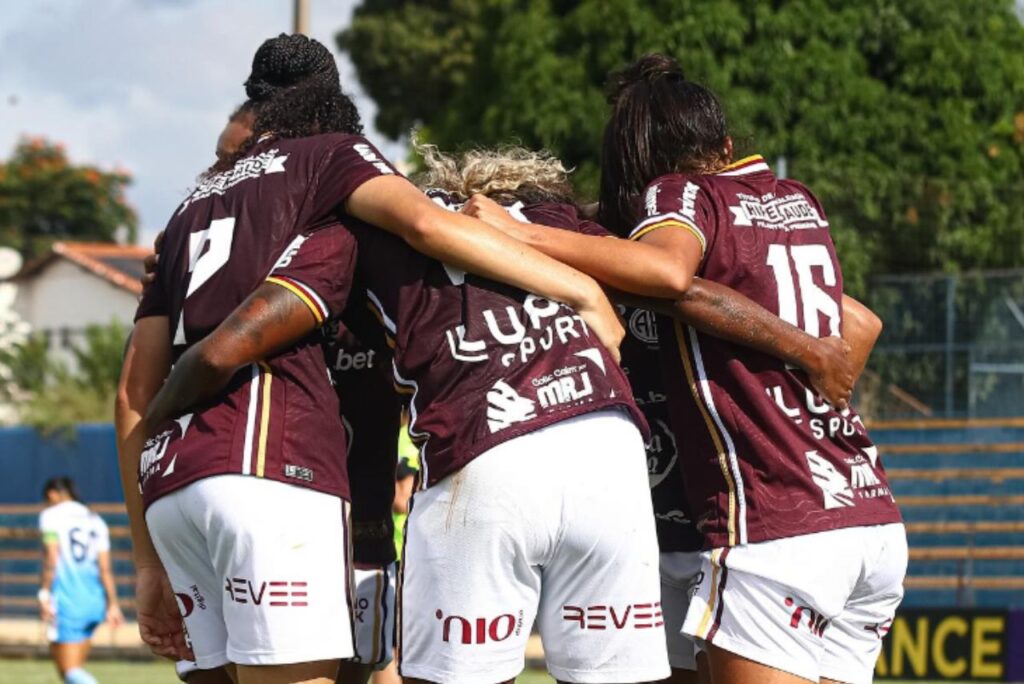 Jogadoras da Ferroviária comemoram vitória em Brasília. Foto: Cárila Covas/Ferroviária SAF
