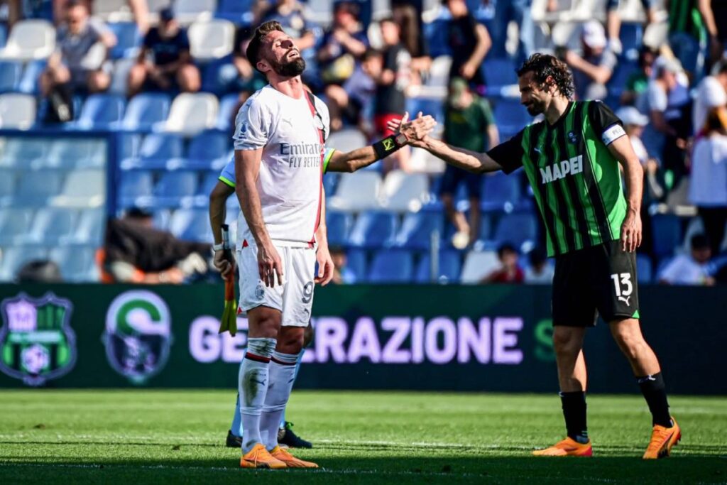 O Milan vinha de cinco vitórias consecutivas no Campeonato Italiano, mas desta vez tudo se complicou desde o início: com o goleiro Mike Maignan fora do elenco poupado por “precaução” e com os titulares Olivier Giroud e Christian Pulisic no banco, o Sassuolo aproveitou para fazer 2 a 0 logo aos dez minutos de jogo, com gols de Andrea Pinamonti (4′) e do francês Armand Laurienté.