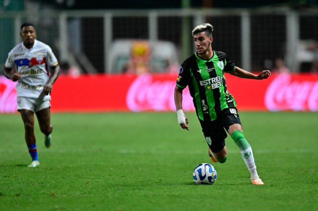 Pedrinho, reforço do Santos, não fez uma grande temporada pelo América-MG em 2023. Foto: Mourão Panda / América
