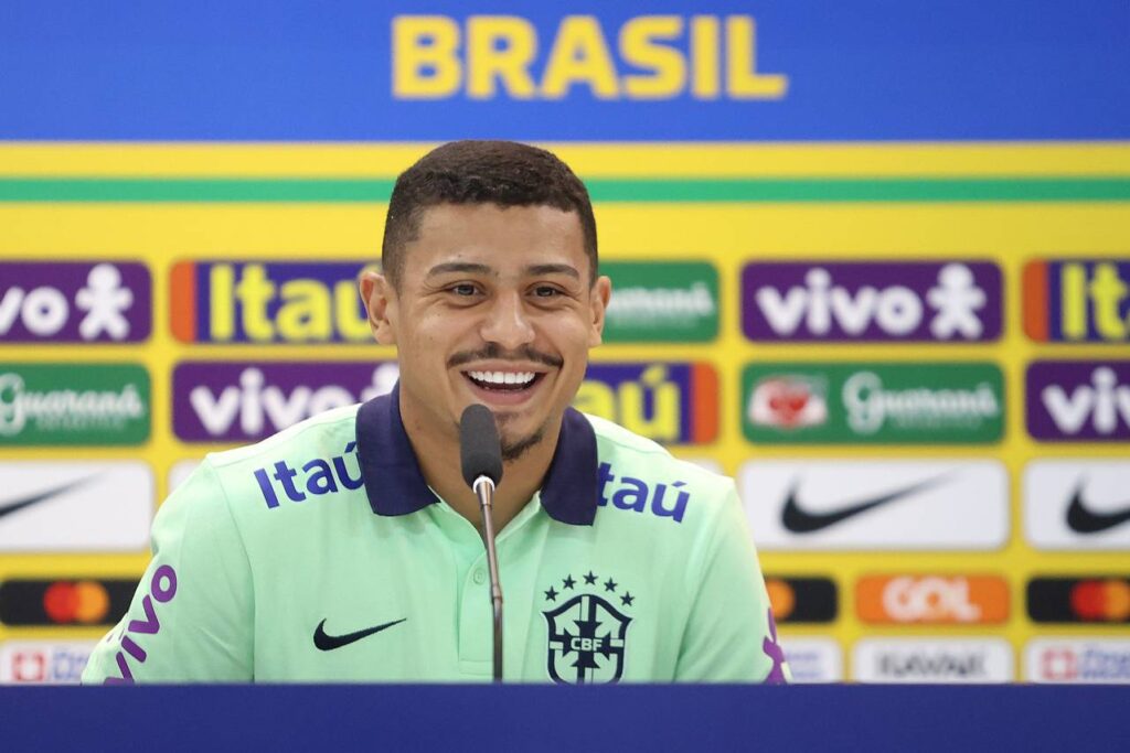 André durante coletiva de imprensa da Seleção Brasileira nesta terça-feira (10). Foto: Vitor Silva/CBF