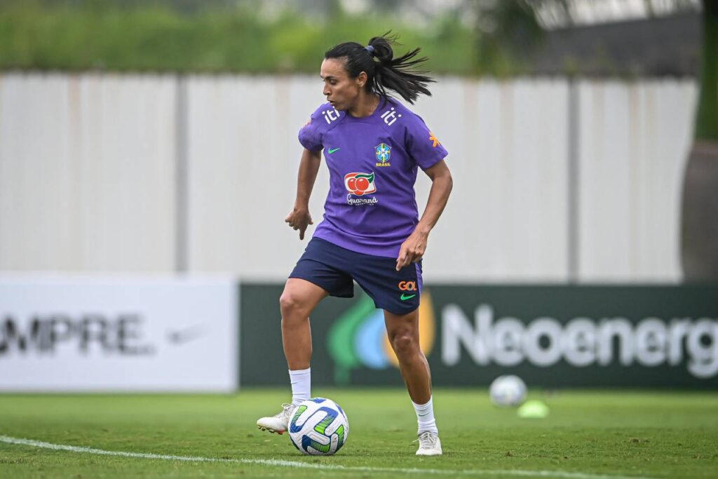 Marta durante treino da Seleção Brasileira