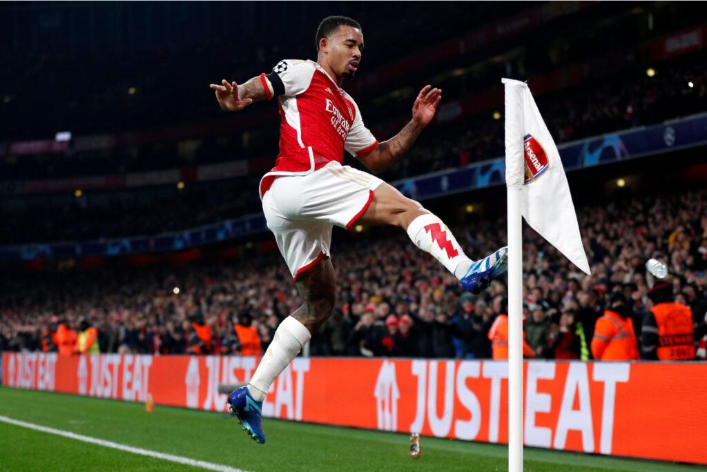 Gabriel Jesus comemora gol pelo Arsenal. Foto: Ian Kington / Ikimages / AFP