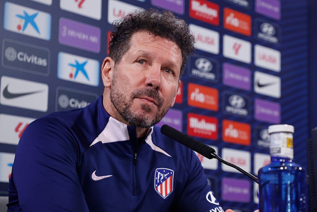 Simeone em coletiva. Foto: Divulgação/Atlético