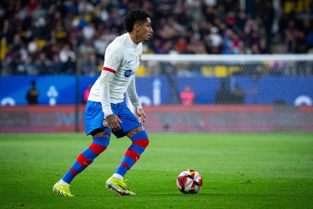 O Barcelona confirmou nesta sexta-feira (12) a ausência do atacante brasileiro Raphinha na final da Supercopa da Espanha contra o Real Madrid, no próximo domingo (14), às 16h.