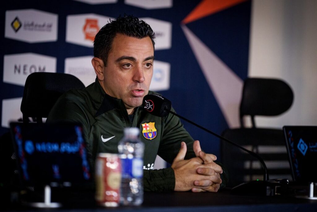 Xavi em coletiva do Barcelona na Arábia Saudita. Foto: Reprodução/FCB