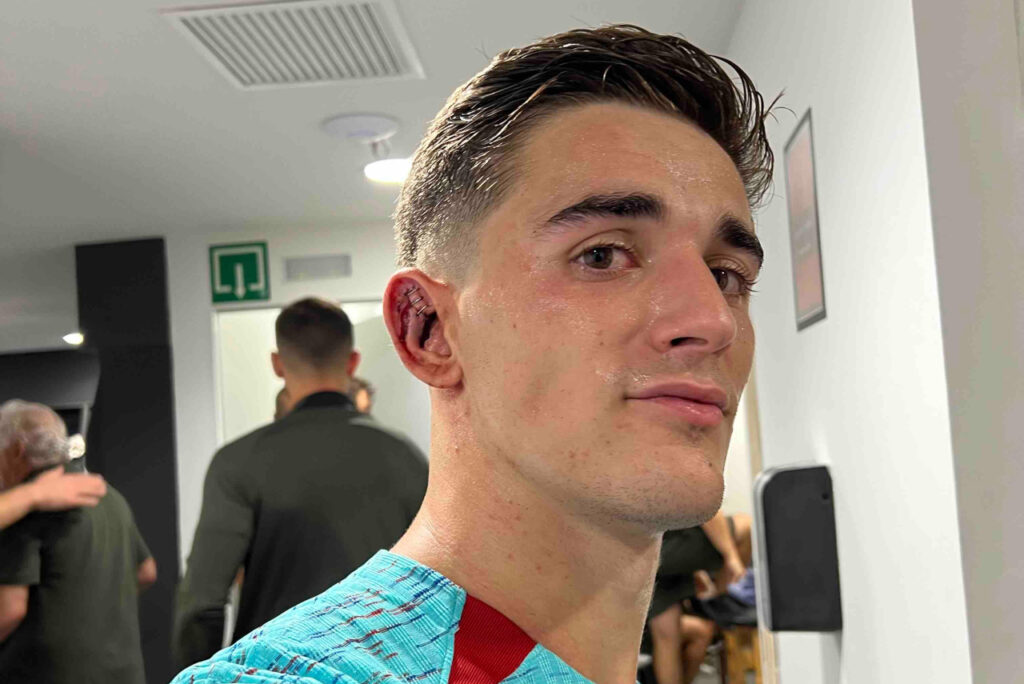Isso porque o jovem sofreu um corte na orelha direita após se chocar com Rubén García aos 10 minutos do segundo tempo.