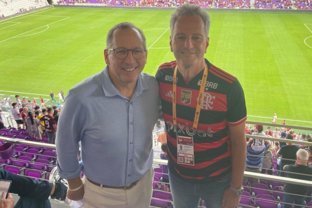 A rivalidade entre Botafogo e Flamengo ficou em segundo plano neste sábado (27). Dono da SAF alvinegra, John Textor se encontrou com o presidente rubro-negro Rodolfo Landim no amistoso entre o Fla e o Orlando City e gerou polêmica ao dizer que estava “torcendo pelo Brasil”.