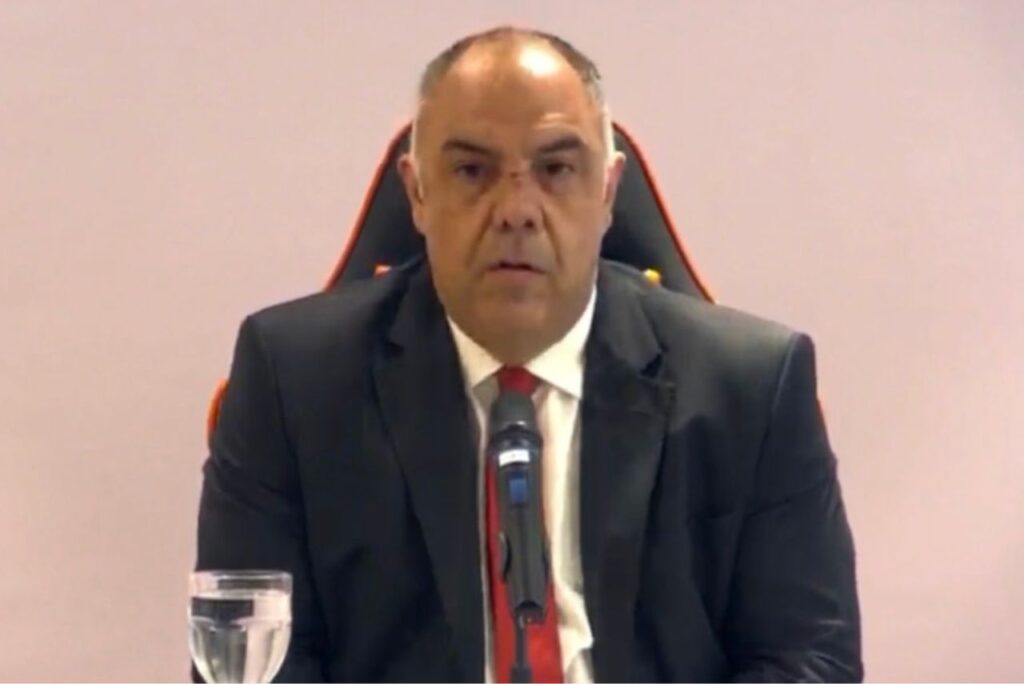 O dirigente se defendeu das acusações de agressão contra o entregador Leandro Gonçalves Júnior, afirmando ter sofrido ameaças. “Ele me ameaçou de morte. Falou que, se o resultado não viesse, a cobrança ia ser muito diferente”, afirmou.