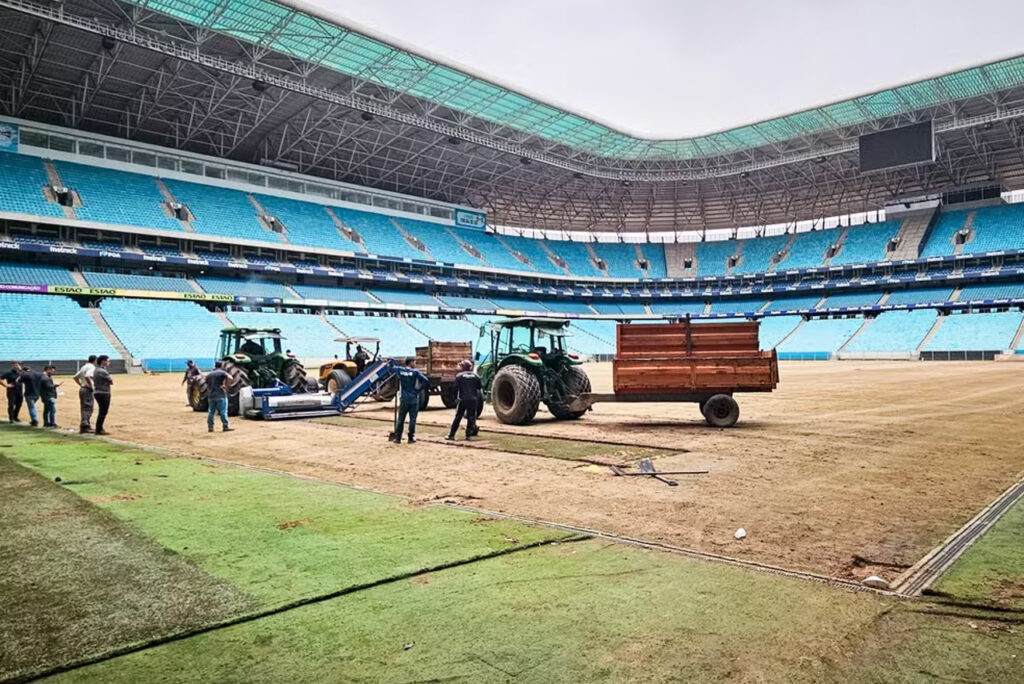 Arena do Grêmio passa por reparos após enchentes (Foto: Emanuel Prestes/Arena do Grêmio)