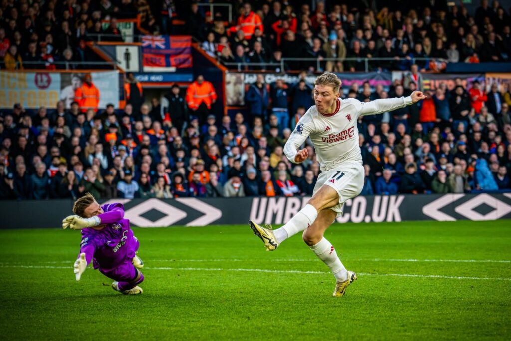 A emoção nem esperou o primeiro minuto. Quando Casemiro bateu de fora, a defesa do Luton afastou mal e a bola sobrou para Højlund bater para o gol e abrir o placar. E ele ainda guardava mais. Aos 6, a joia dinamarquesa apareceu na área para deslocar depois de um chute de Garnacho.