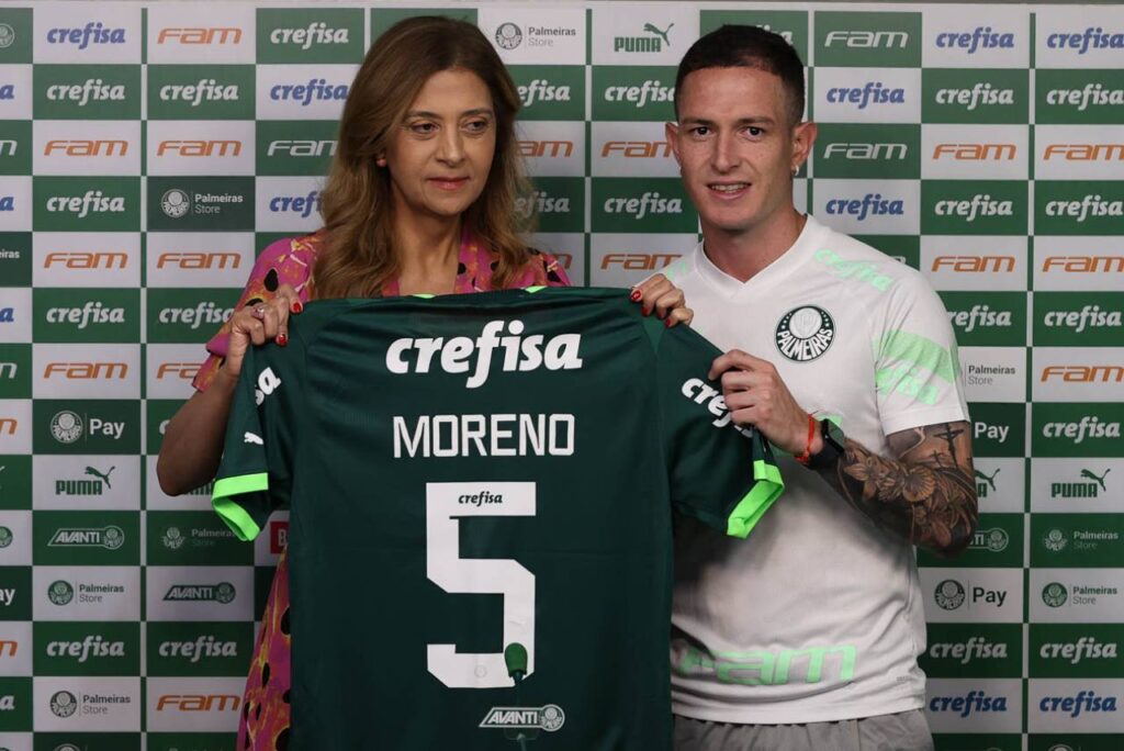 Aníbal Moreno, novo volante do Palmeiras, foi apresentado na Academia de Futebol do clube nesta quarta-feira (10), e revelou que teve uma conversa com o atacante Flaco López sobre o processo de adaptação. O jogador vai usar a camisa 5.