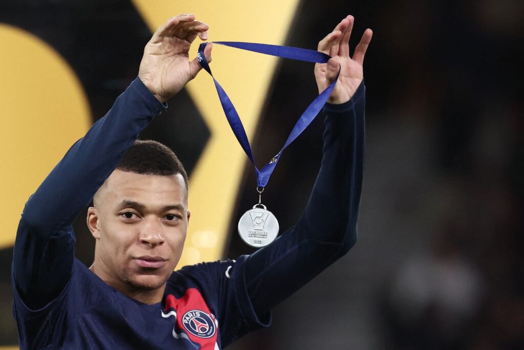 Mbappé na premiação da Supercopa da França (Foto: Franck Fife/AFP)