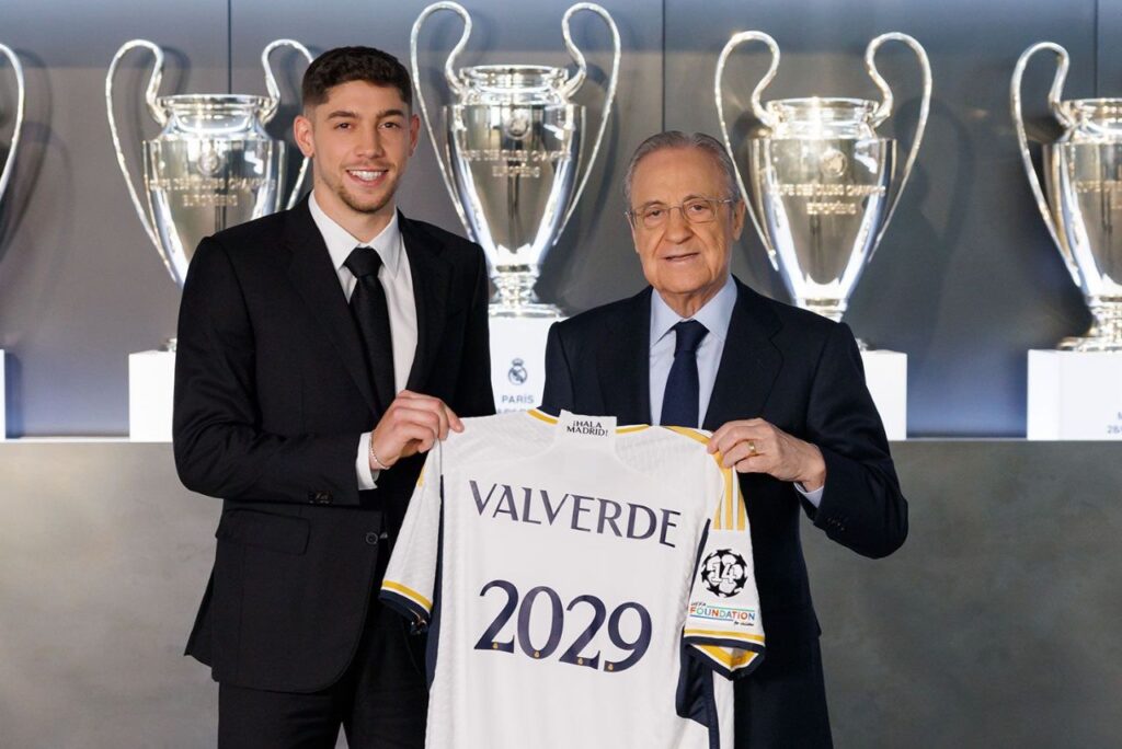 O Real Madrid anunciou nesta quinta-feira (9) a renovação do contrato do volante uruguaio Fede Valverde até junho de 2029.