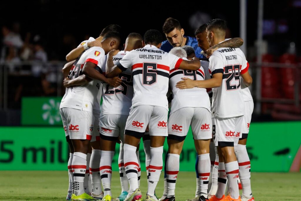 Elenco do São Paulo durante empate no Morumbi. Foto: Rubens Chiri e Paulo Pinto/Saopaulofc.net