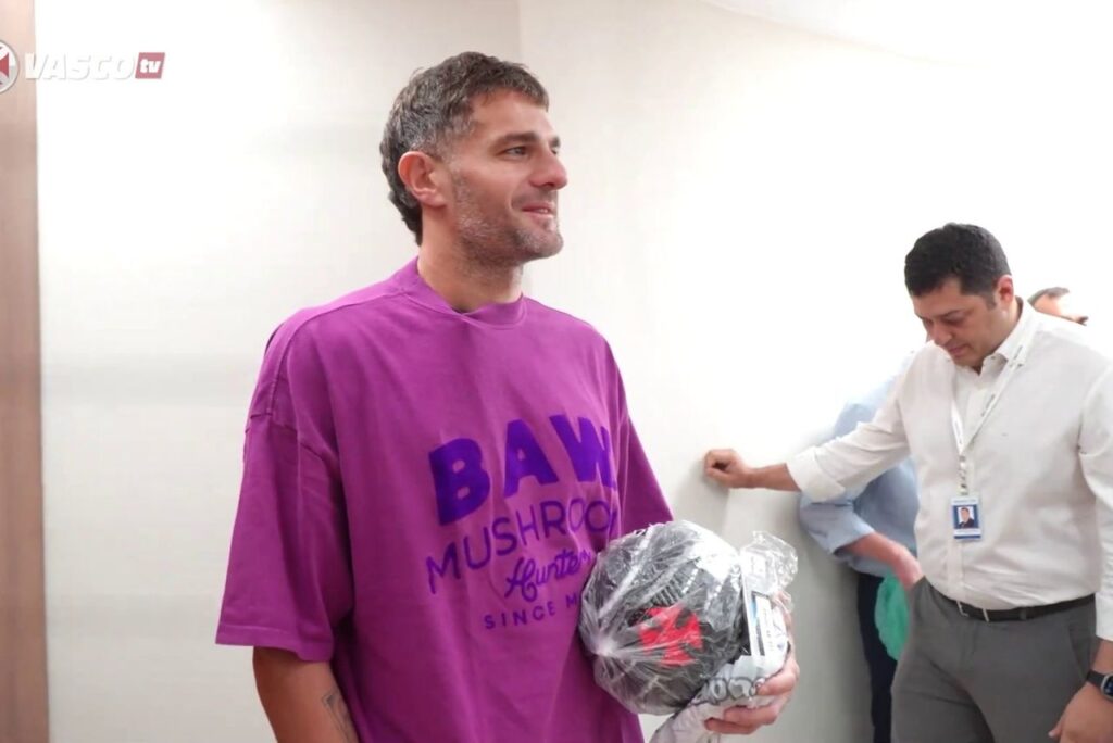 Golaço fora de campo. O atacante Pablo Vegetti, do Vasco, visitou o pequeno vascaíno Arthur, que fez sua última sessão de radioterapia.
