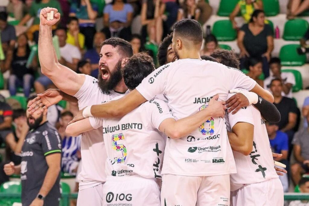 Jogadores do Saneago Goiás comemoram vitórias na Superliga B de Vôlei 2024
